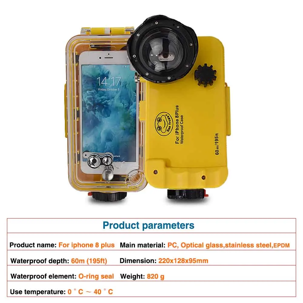 - Product name : 195FT/60M Diving Case For iPhone 7 8 Plus Cover Professional Surfing Swimming Snorkeling Photo Vide